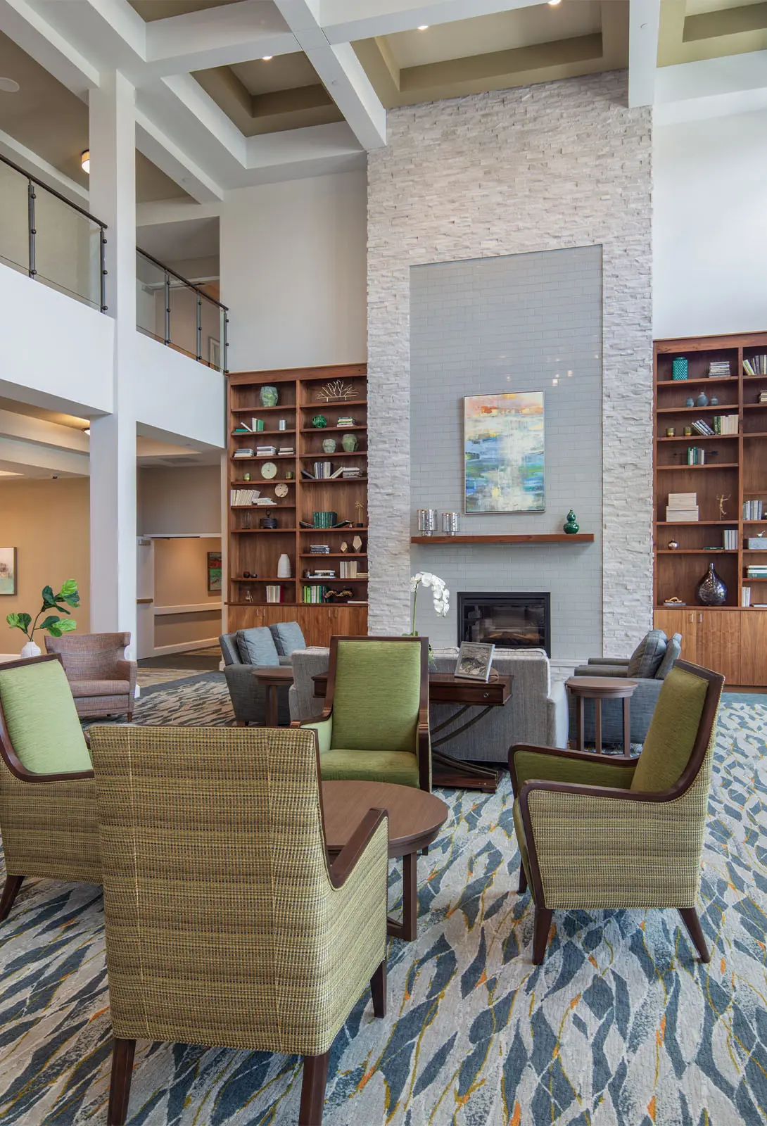 - Engaging Circulation Paths: Wide, well-lit hallways with seating areas promote spontaneous conversations and movement throughout the community.