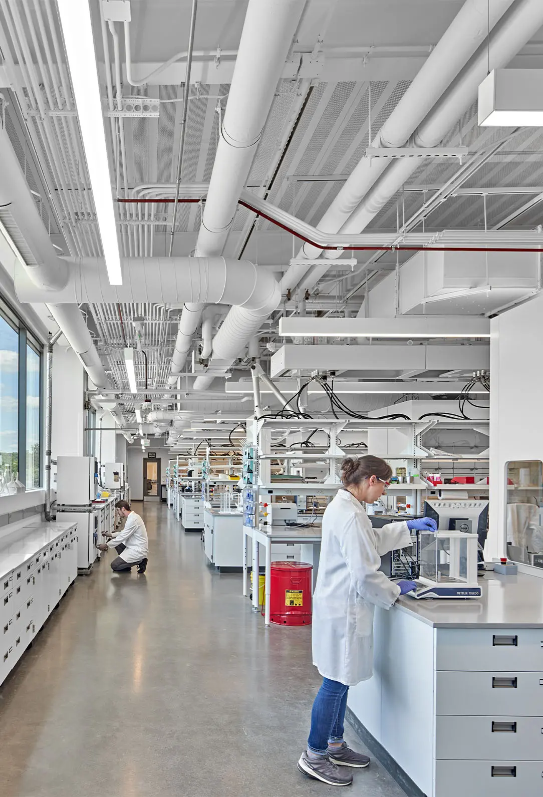 The landscape of research and development spaces is evolving rapidly to meet the dynamic needs of a modern workforce that values amenities, collaboration, and resilient and beautiful finishes. The concept of the “divergent laboratory” is central to this evolution, embodying a space that supports adaptive and creative processes in an inclusive way while enabling teams to expand and contract as needed. These elements can enhance the lab space to attract and retain top talent.