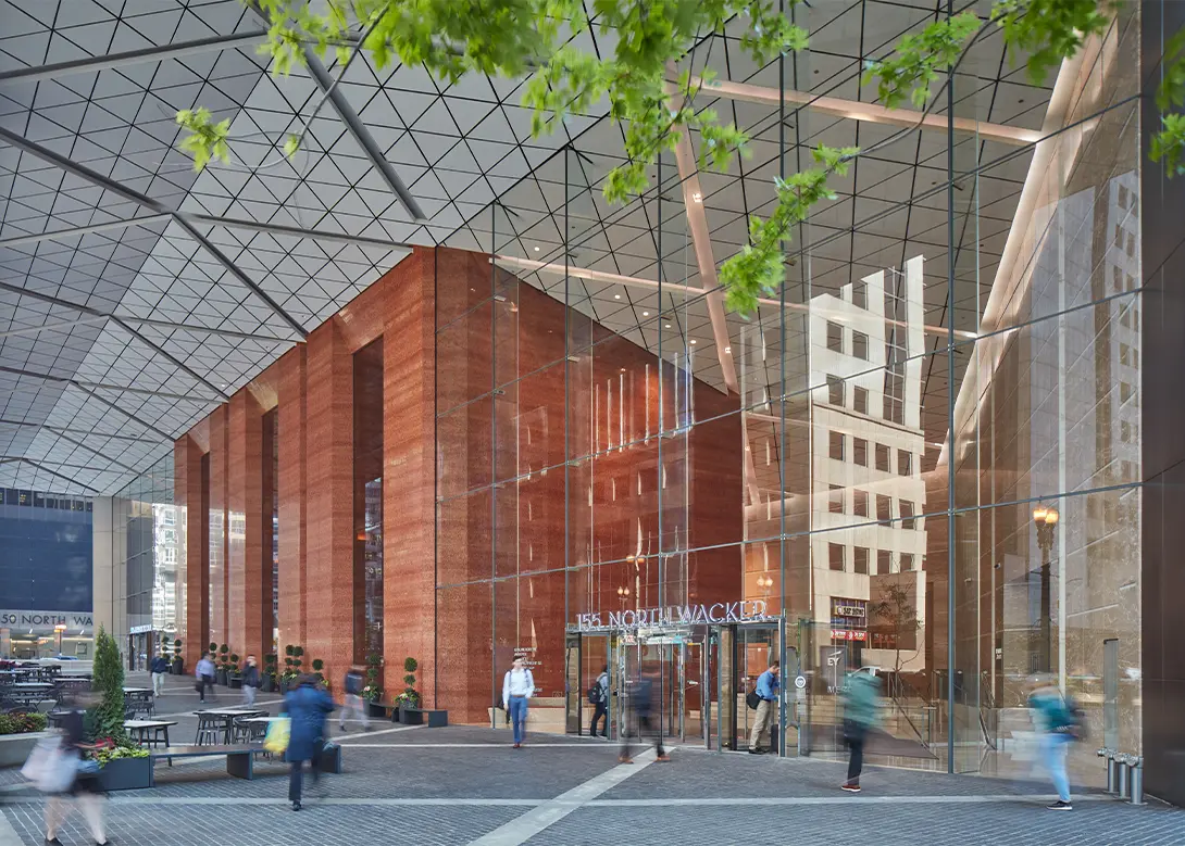 By replacing the aging netwall with an innovative structural glass system, the project restored the integrity of one of Chicago’s most distinctive towers. The intervention reasserts transparency as the defining quality of 155 North Wacker, maintaining the building’s prominence while advancing its resilience.