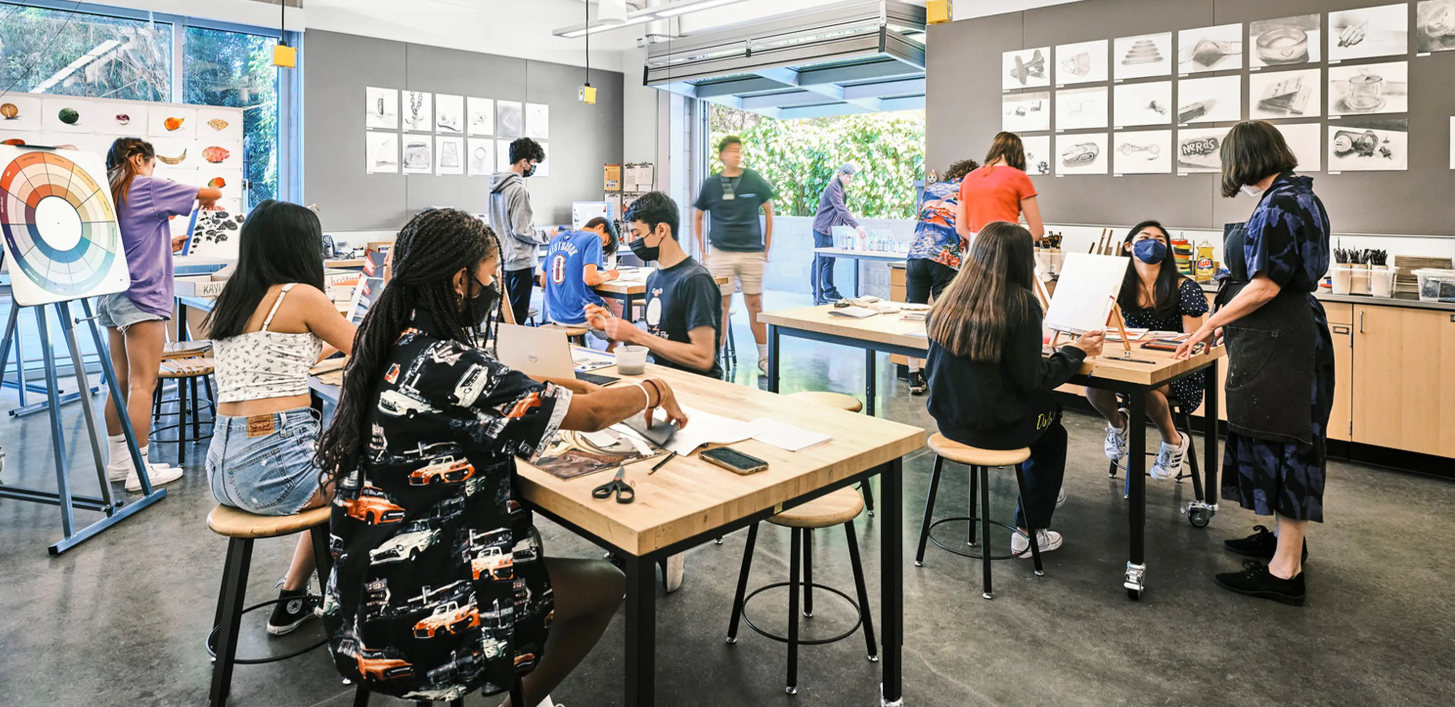 Instructional spaces were designed for maximum flexibility. Movable walls, reconfigurable furniture, and integrated instructional media allow rooms to shift seamlessly from lectures to team-based projects to presentations. Leadership program spaces emphasize transparency, encouraging movement between rooms and fostering collaboration across classes. The design also takes advantage of Southern California’s climate, with glazed doors that open the atrium directly to the athletic field and overhead glass doors that allow the art studio and maker space to spill outdoors onto adjacent terraces.