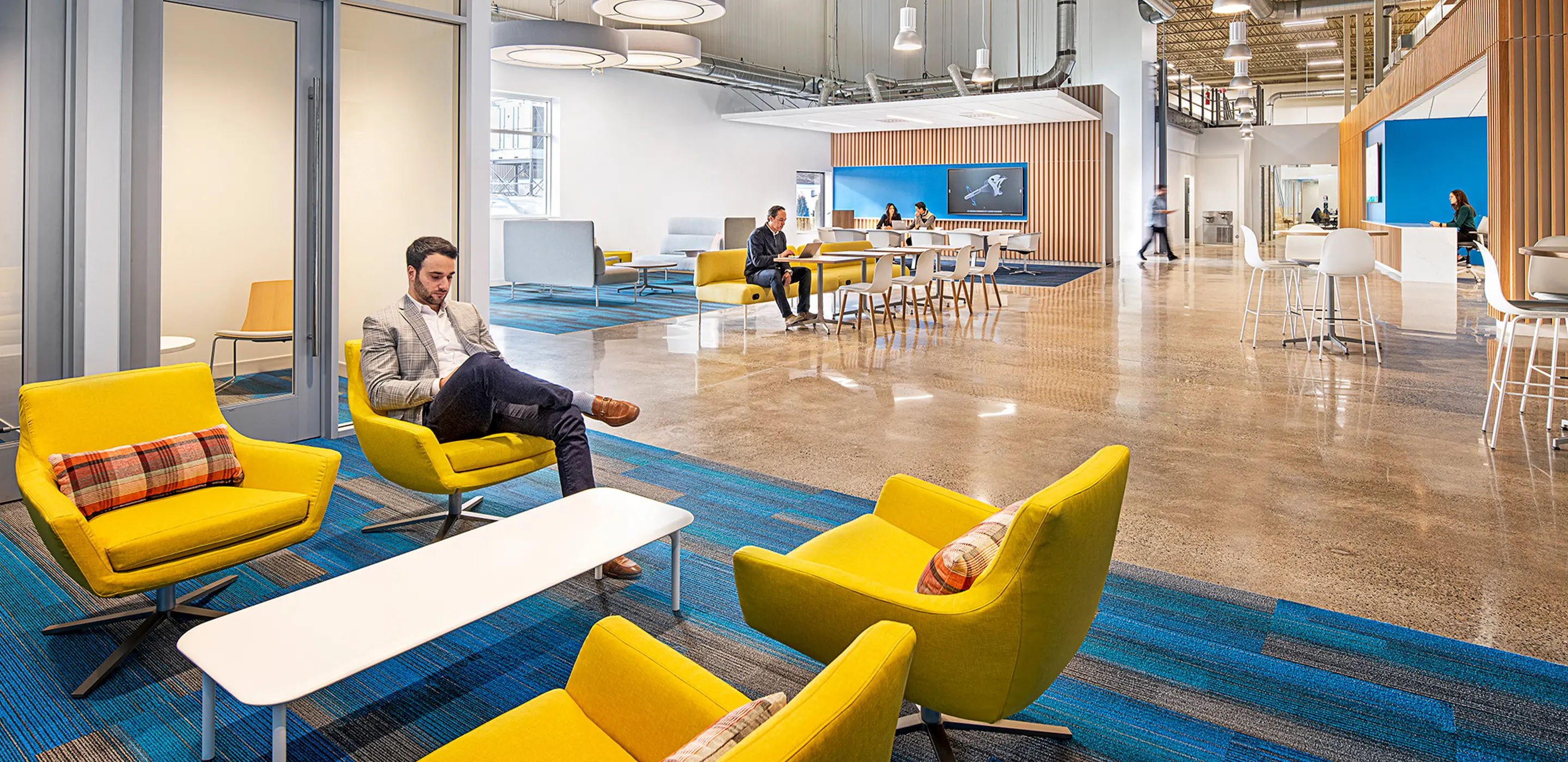 Inside, the environment was carefully shaped to reflect Zimmer Biomet’s identity. Cultural elements, colors, and symbology were embedded throughout, turning the space into a physical expression of the company’s values. Graphics, finishes, and architectural moves serve both functional and branding purposes—reinforcing the company’s reputation for innovation while creating a professional, memorable experience for visitors.