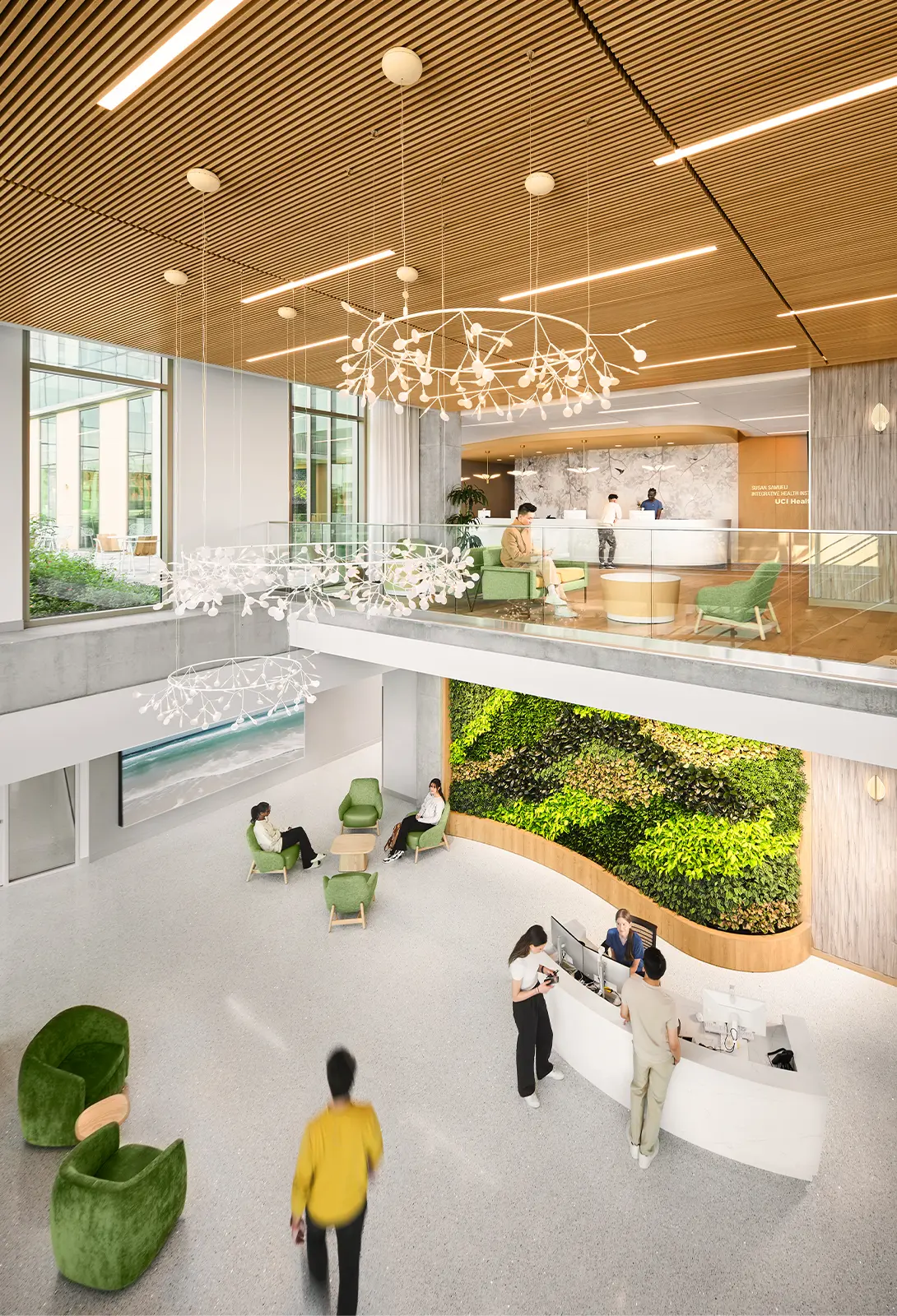 Heart: The Susan & Henry Samueli College of Health Sciences Building features a distinctive two-story lobby with a living wall, creating an inspiring entry and sense of community for patients, students, and clinicians.