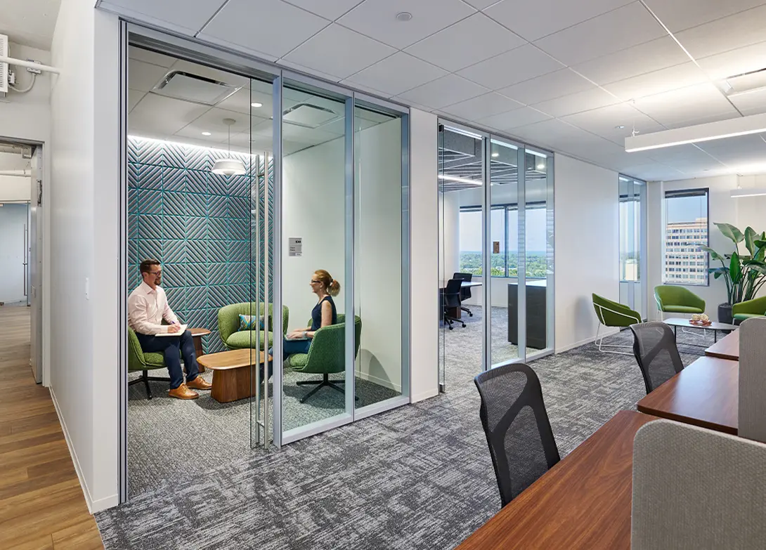 The renovation was carefully ratioed to accommodate 1,200 employees with an emphasis on flexibility and accessibility. The space includes 280 workstations, 28 private offices, 25 phone rooms, 11 huddle rooms, seven small conference rooms, 12 medium conference rooms, two large conference rooms, and three training rooms.