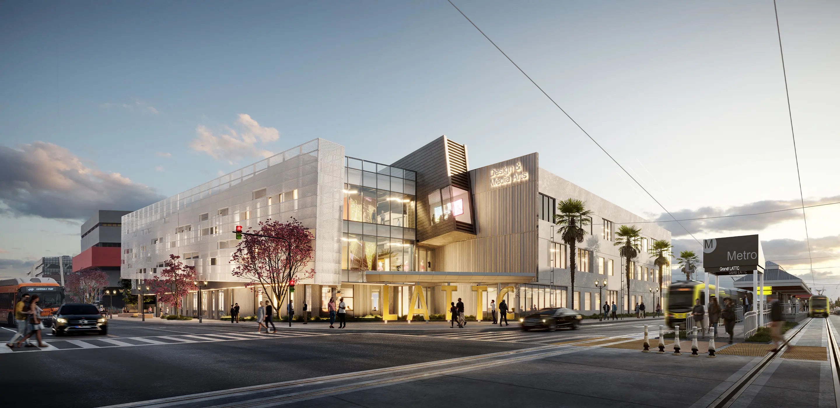 Sited on the campus’s most prominent corner, the DMA building presents a striking new face to the city. Its location along the elevated light rail line and proximity to Los Angeles’s fashion district make it both highly visible and contextually relevant. Expansive glazing and exhibition zones showcase student creativity to the surrounding community, turning the building into a living gallery of design. This visibility reinforces LATTC’s role as a leader in design education while inspiring connections between the campus and the industries it serves.
