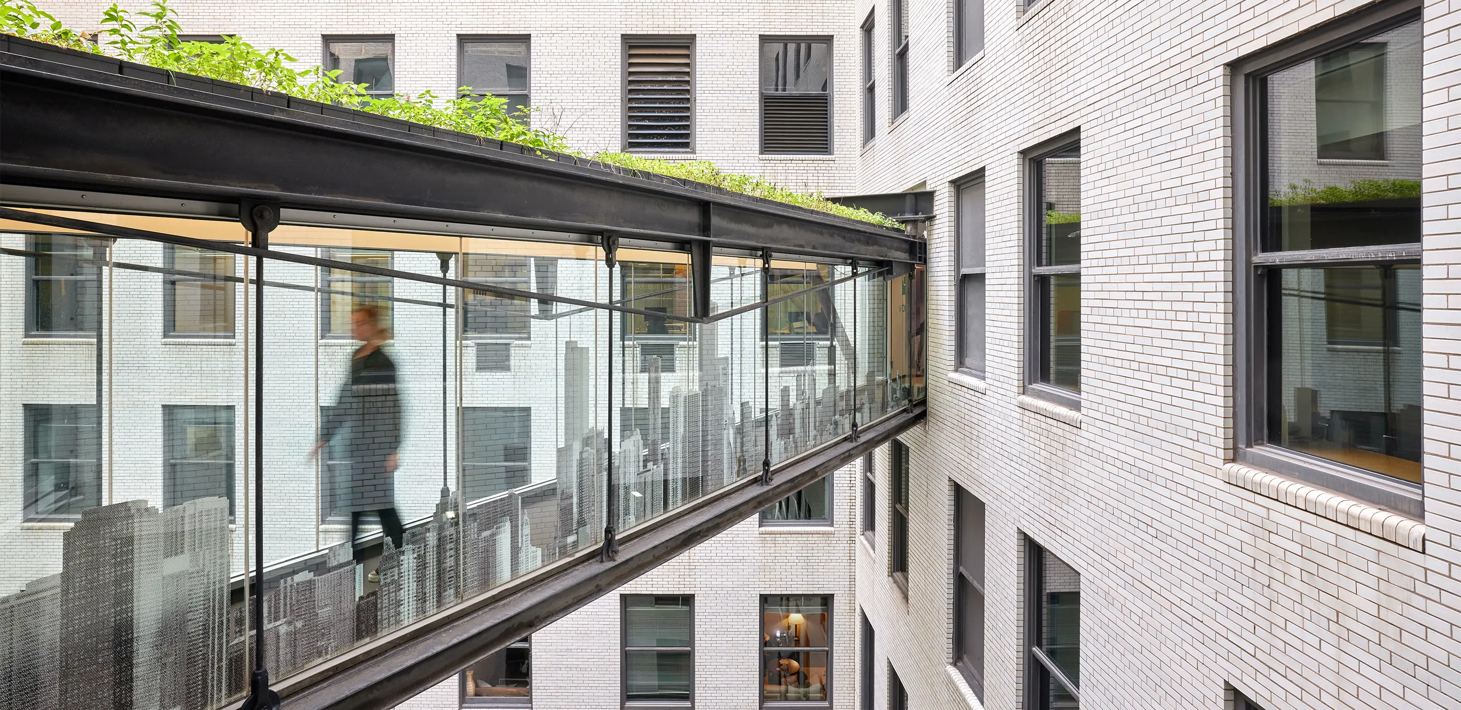 As employees and guests move deeper into the space, the story continues. A large Chicago skyline graphic on the bridge connects the company’s national presence back to its local roots, while a client celebration wall honors the relationships that fuel the business. These layered experiences create cohesion, carrying the energy of the brand through circulation paths, gathering spaces, and work zones. The result is a workplace where every design decision, from interior architecture to visual storytelling, reinforces a single narrative of innovation and pride.