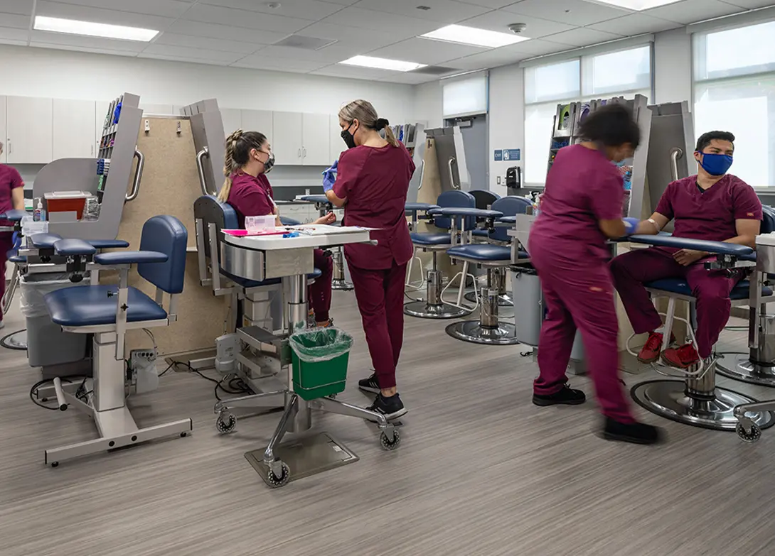HED approached the project by drawing on its combined expertise in both education and healthcare design. The goal was to create state-of-the-art learning environments that reflected the standards of professional healthcare settings while remaining financially accessible. Programs supported in the new complex include Dental Assistant, Certified Nursing Assistant, Pharmacy Technician, Vocational Nursing, EMT, and Phlebotomy. Each space was designed to replicate real-world conditions as closely as possible, equipping students with the skills and confidence to transition seamlessly into the workforce.