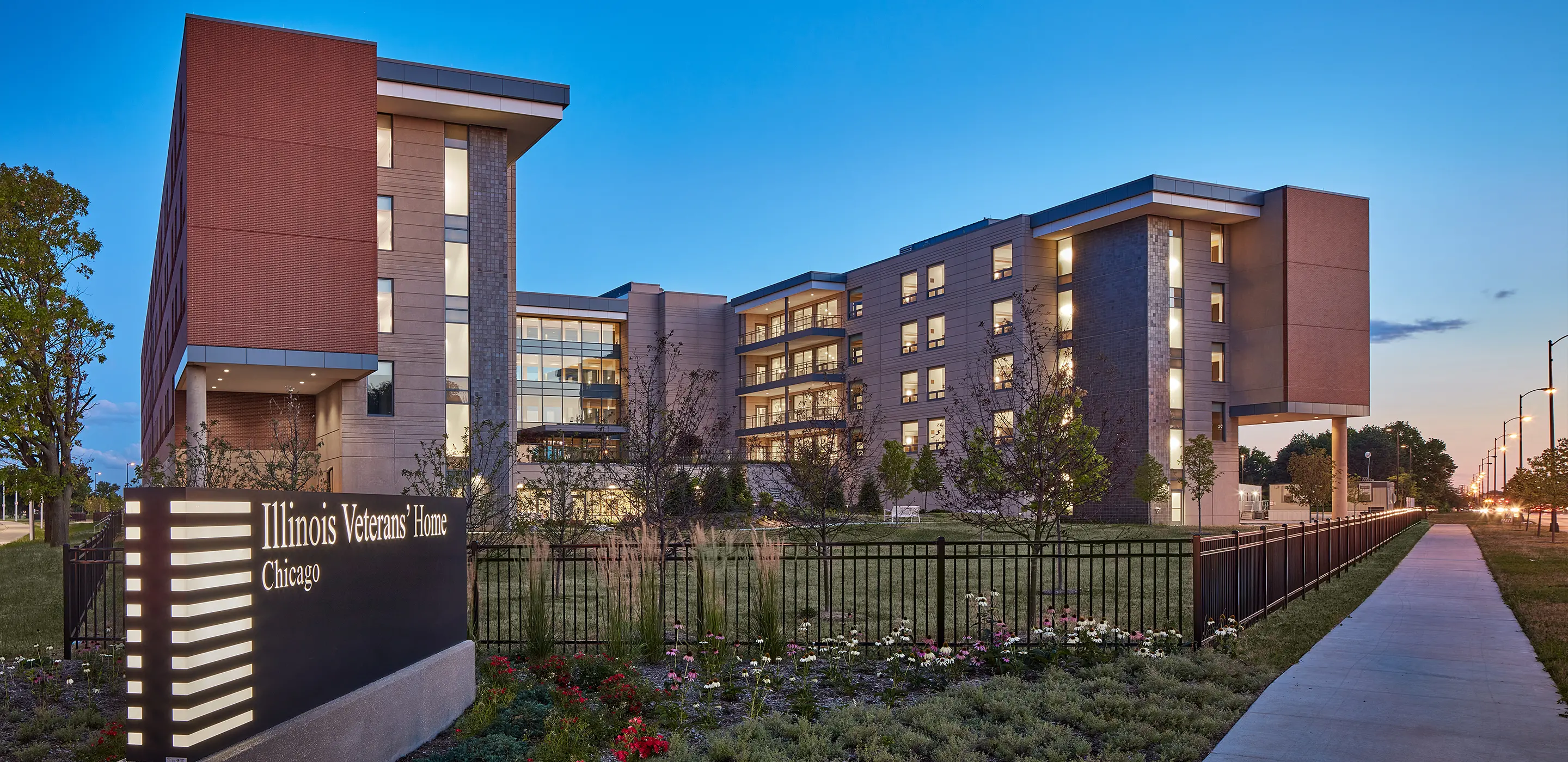 The Illinois Veterans’ Home on Chicago’s northwest side marks a milestone in the state’s commitment to those who served. As the first newly constructed veterans’ home in Illinois in more than 20 years, it also stands as the first such facility in the state to incorporate the federal Community Living Center (CLC) guidelines. This progressive approach redefines long-term care for veterans by blending residential character, community interaction, and access to nature.