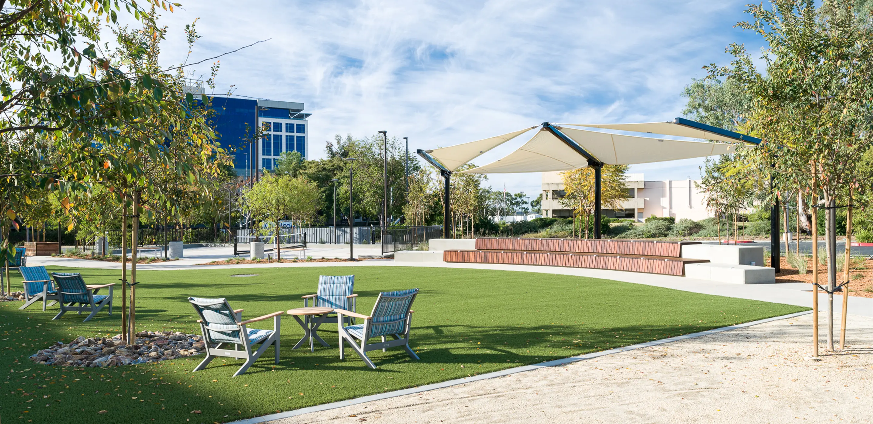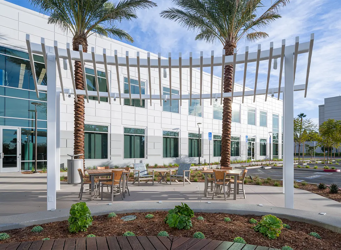 In San Diego’s growing science and technology sub-market, an outdated suburban office site was transformed into a vibrant campus destination through thoughtful landscape architecture and adaptive re-use. HED partnered with CapitaLand to reimagine the five-acre property, creating a generous outdoor amenity hub that repositions the site as a modern, wellness-focused workplace environment.