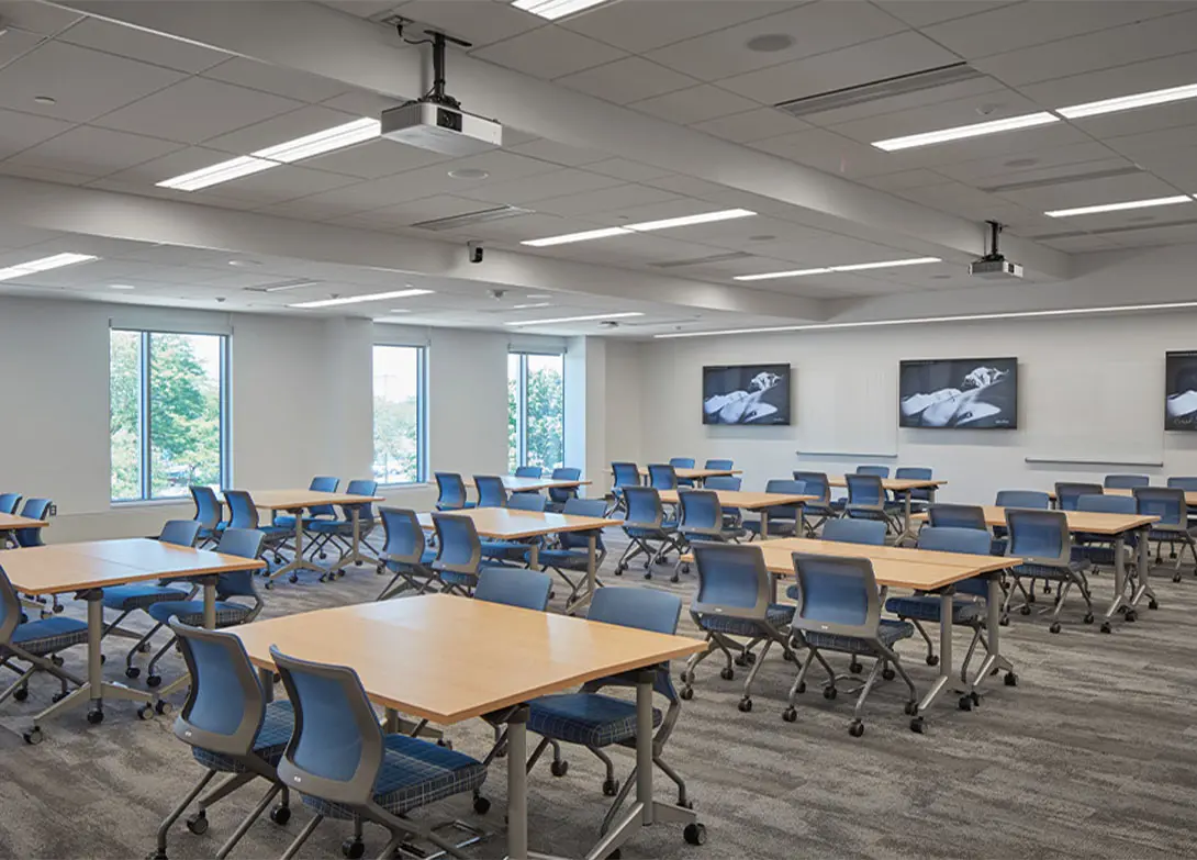 Sustainability was integral to the project. The addition achieved LEED Silver certification, reflecting both environmental responsibility and a commitment to long-term performance. Renovations to the building envelope, energy-efficient mechanical systems, and thoughtful daylighting strategies reduce energy use while improving the overall learning environment.