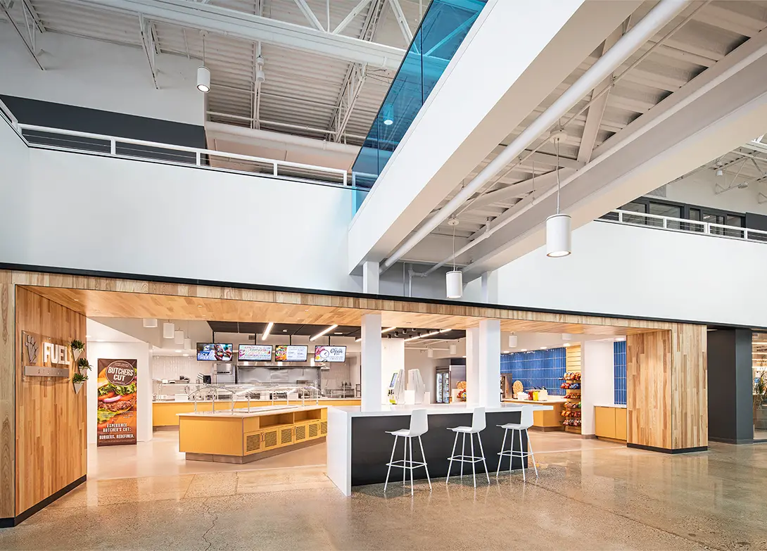 The building itself was designed for both performance and flexibility. Mechanical and control systems optimize comfort while accommodating future growth. Strategic use of materials, wayfinding cues, and lighting functions enhance both customer and employee experiences. The facility is outwardly visible from nearby highways, serving as a physical and symbolic representation of the brand to the broader community.