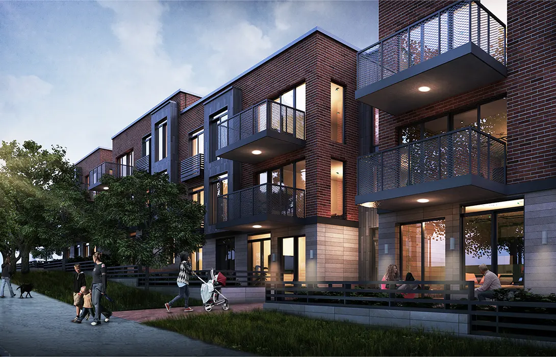 Accessibility to open space was a defining principle of the concept. Landscaped courtyards, pocket parks, and pedestrian pathways were designed to encourage movement through the site, reinforcing it as a connector rather than a barrier. The combination of public plazas and green space supported informal gatherings and recreational use, ensuring that Vine Street would serve as a destination for both residents and the larger community.