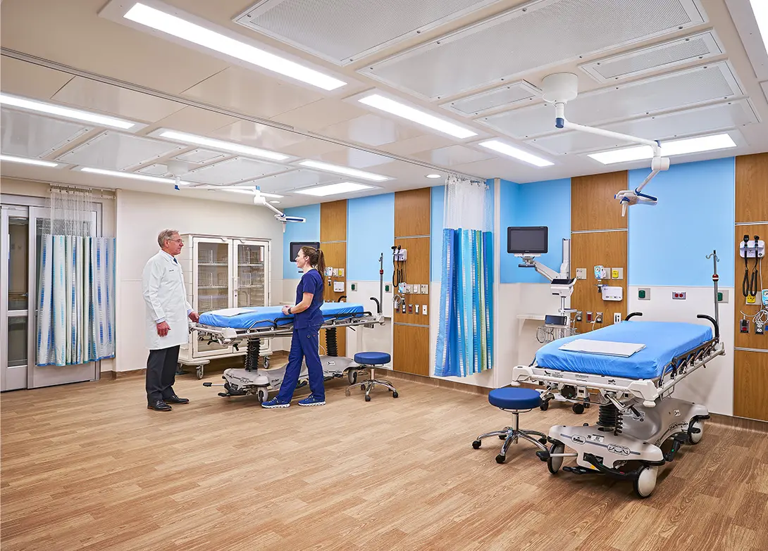 Ascension St. John Hospital identified a critical need for a pediatric emergency department separate from its adult ED—one that would provide a welcoming, child-focused environment while supporting efficient, high-quality care. Partnering with HED, the hospital transformed a former urgent care space into a modern, pediatric emergency department tailored to the needs of young patients and their families.
