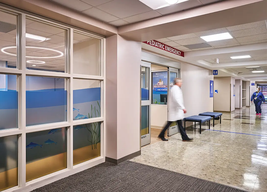 The renovation adapted the ground floor of the west addition, converting an existing urgent care space into a state-of-the-art pediatric emergency unit. Throughout the project, HED worked with Ascension to prioritize the experience of children and families. By designing with empathy, the new department reflects the hospital’s mission to provide not only medical care, but also comfort, reassurance, and dignity to the youngest members of the community.