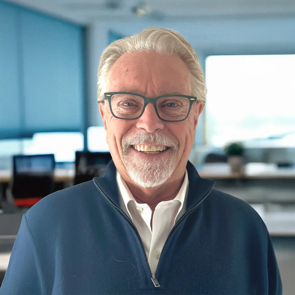People in a bright community room chatting, with a dog by the window. Comfortable, inclusive space.