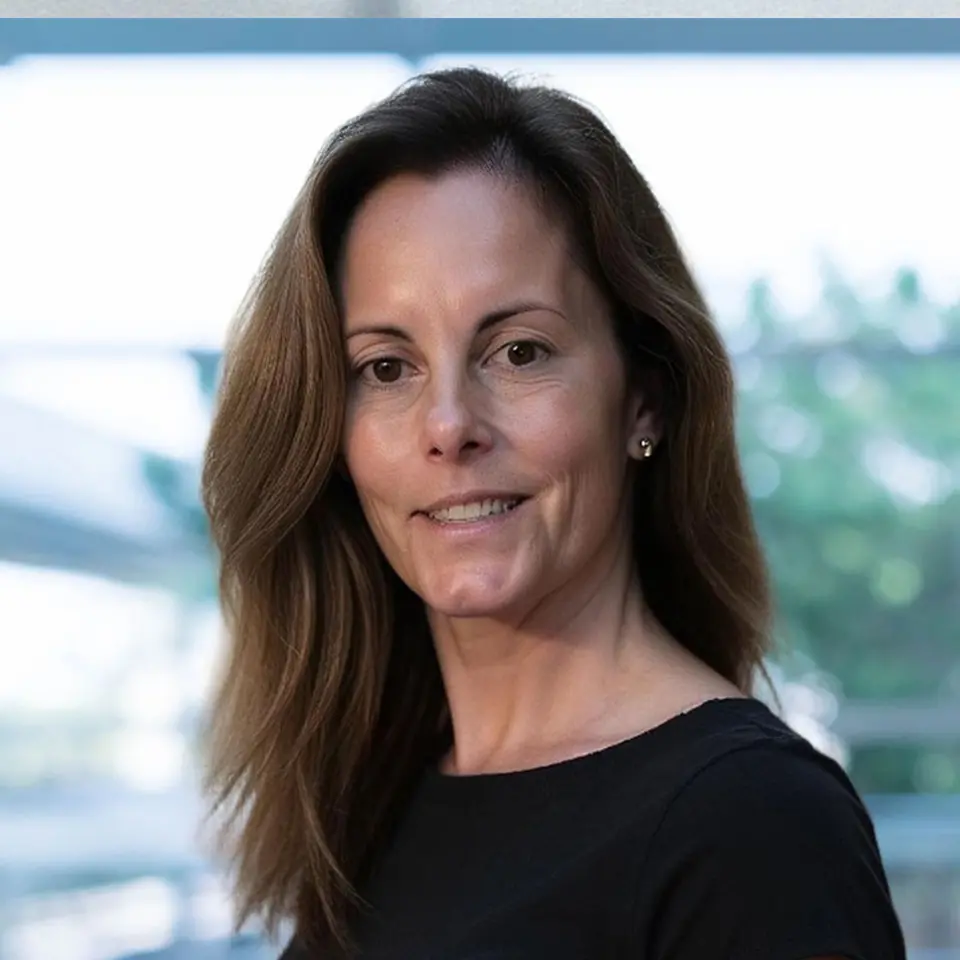 Modern brick building with large glass windows and outdoor seating, showcasing architectural design.